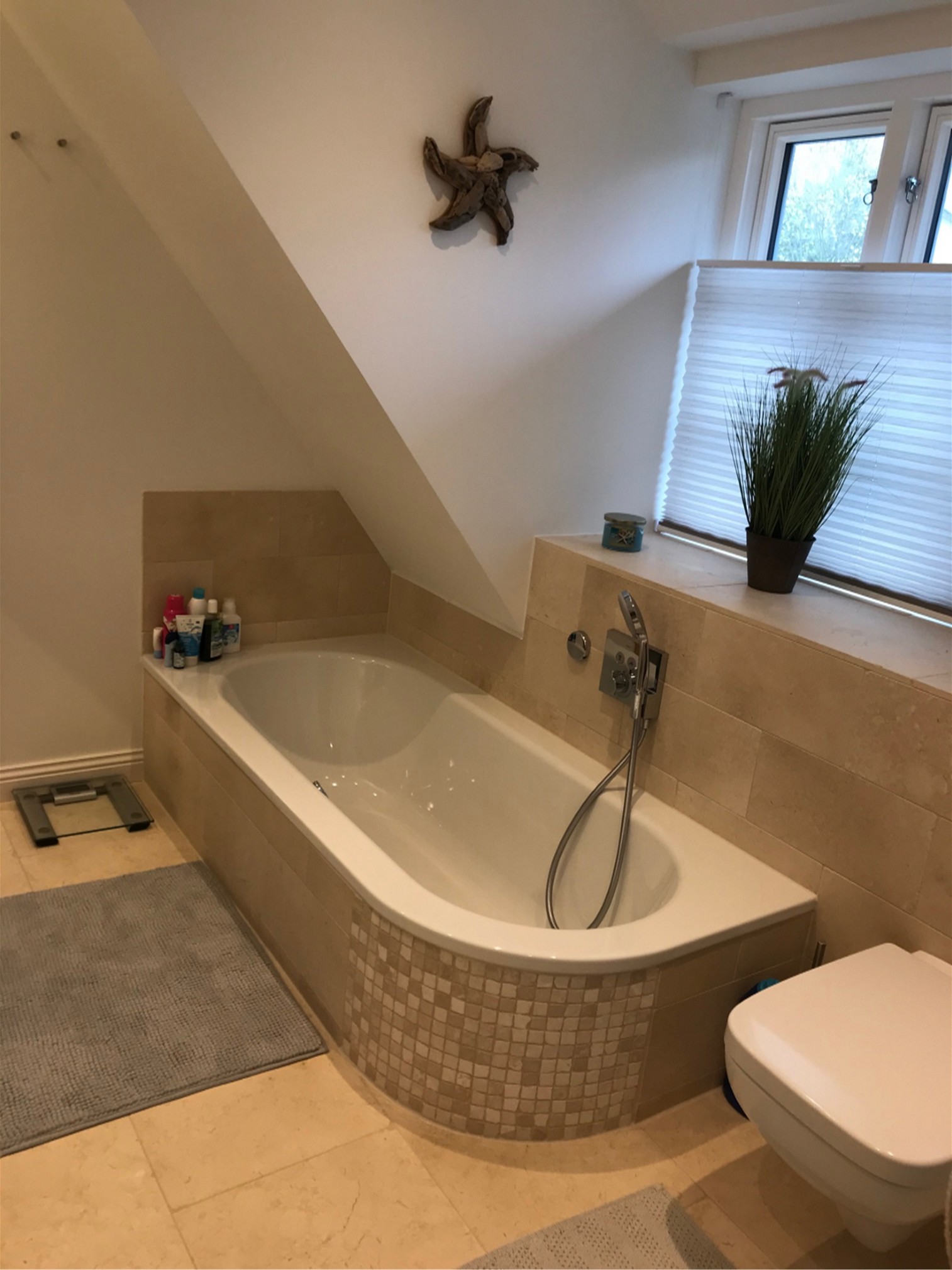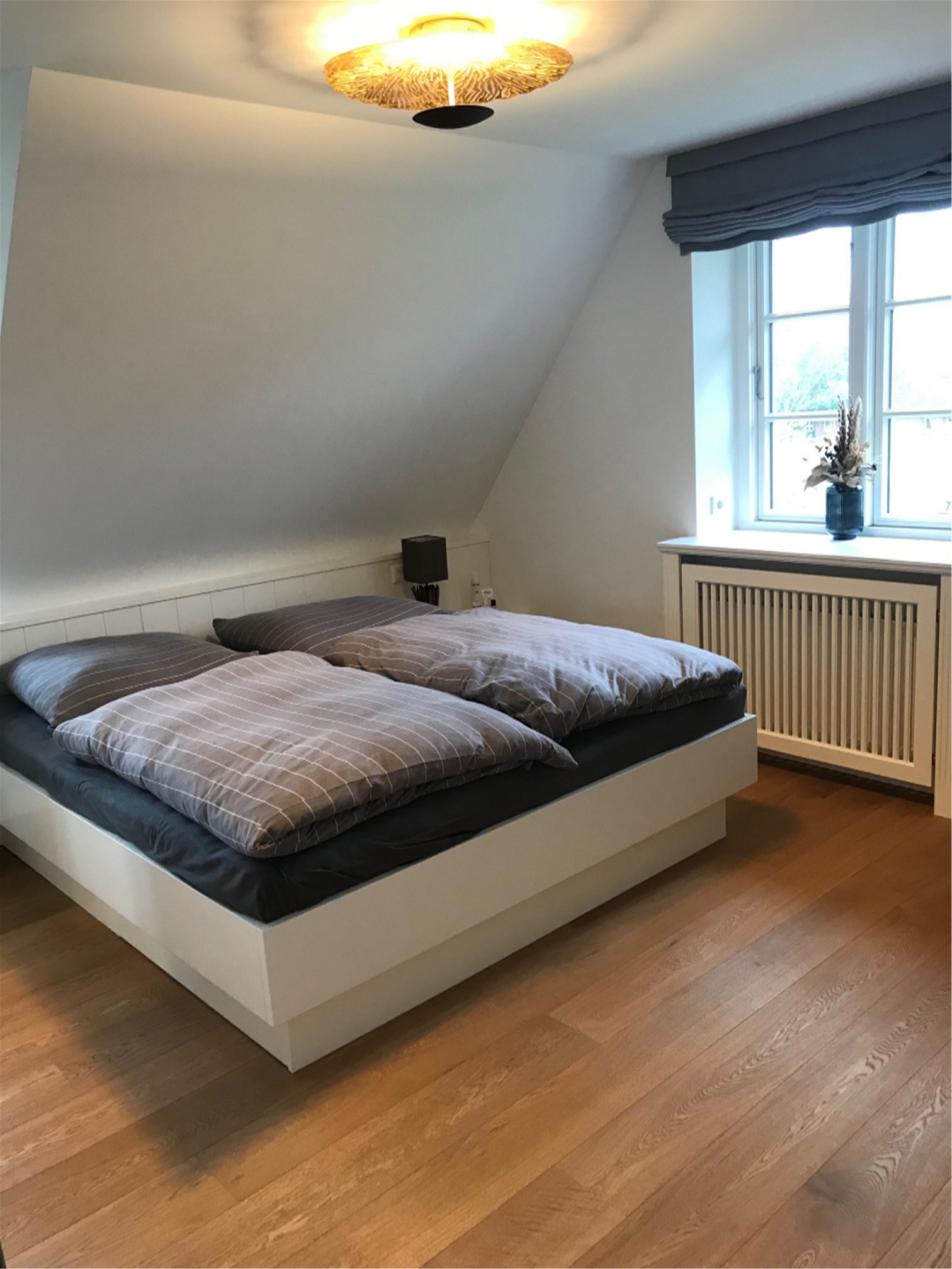 Im Dachgeschoss sind zwei Schlafzimmer, ein Bad mit Sauna und ein Flur sowie ein Abstellraum im Spitzbodengeschoss. In der allein zu nutzenden Gartenfläche ist eine befestigte Terrassenfläche von insgesamt ca.70 m² angelegt. Diese ist aus dem Wohn-/Essbereich direkt erreichbar.