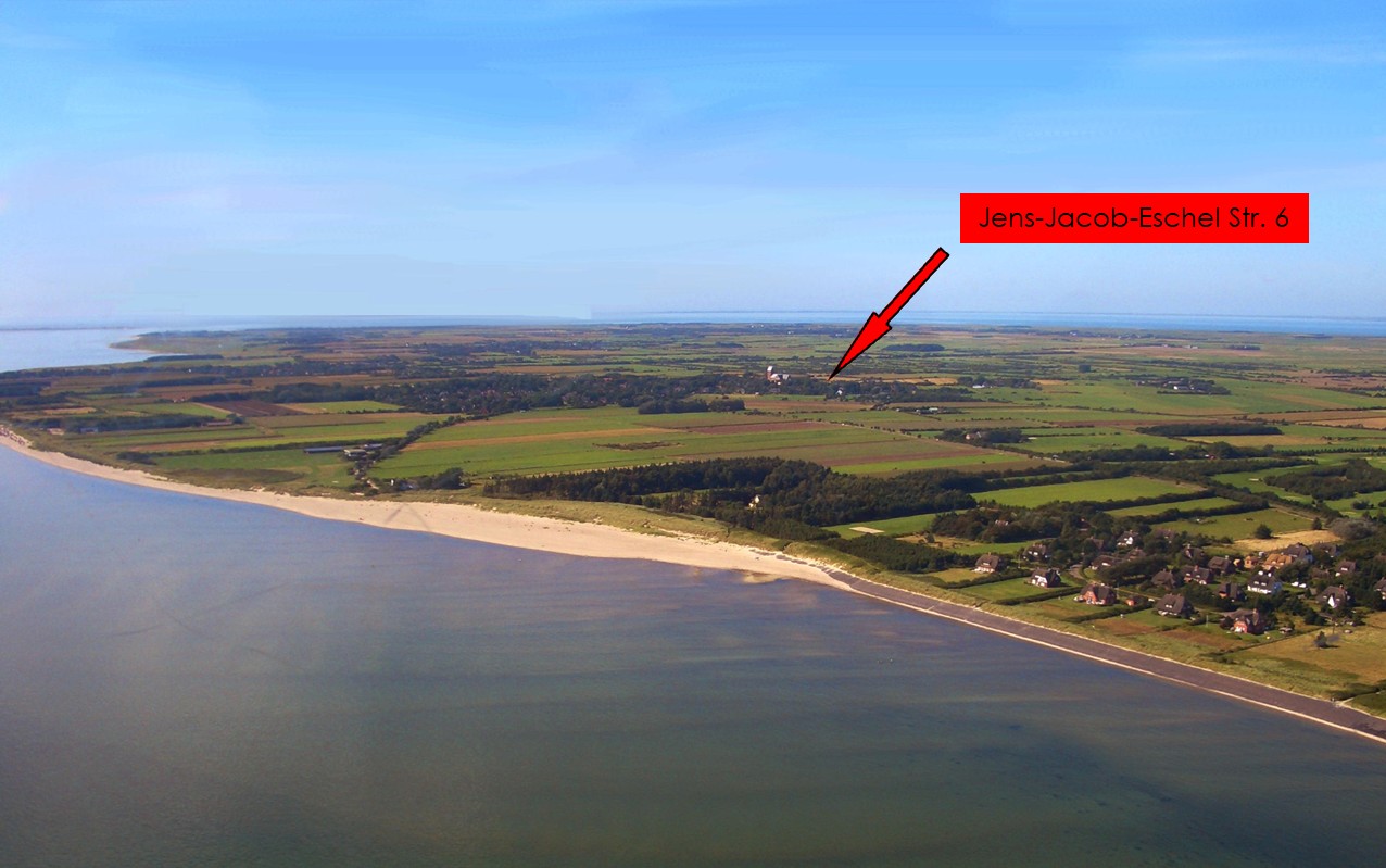 Die Jens-Jacob-Eschel Straße befindet sich im Ortskern von Nieblum, nicht weit entfernt vom herrlich weißen Sandstrand.