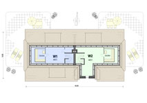 Im Spitzboden ist ein großer Saunaraum mit Platz zum Relaxen. Zum Nordwesten wird eine befestigte Terrassenfläche von insgesamt ca. 60,00 m² angelegt.