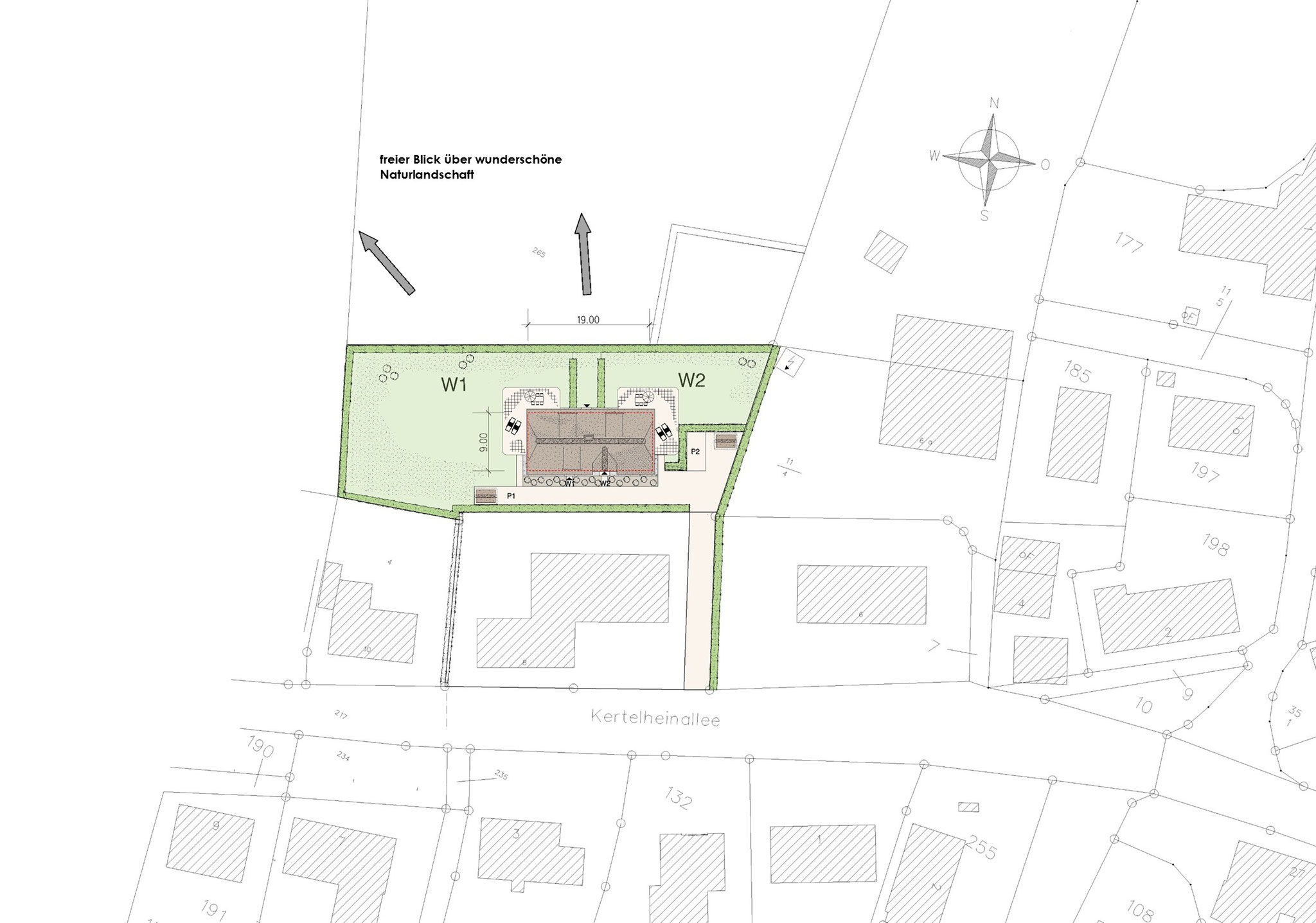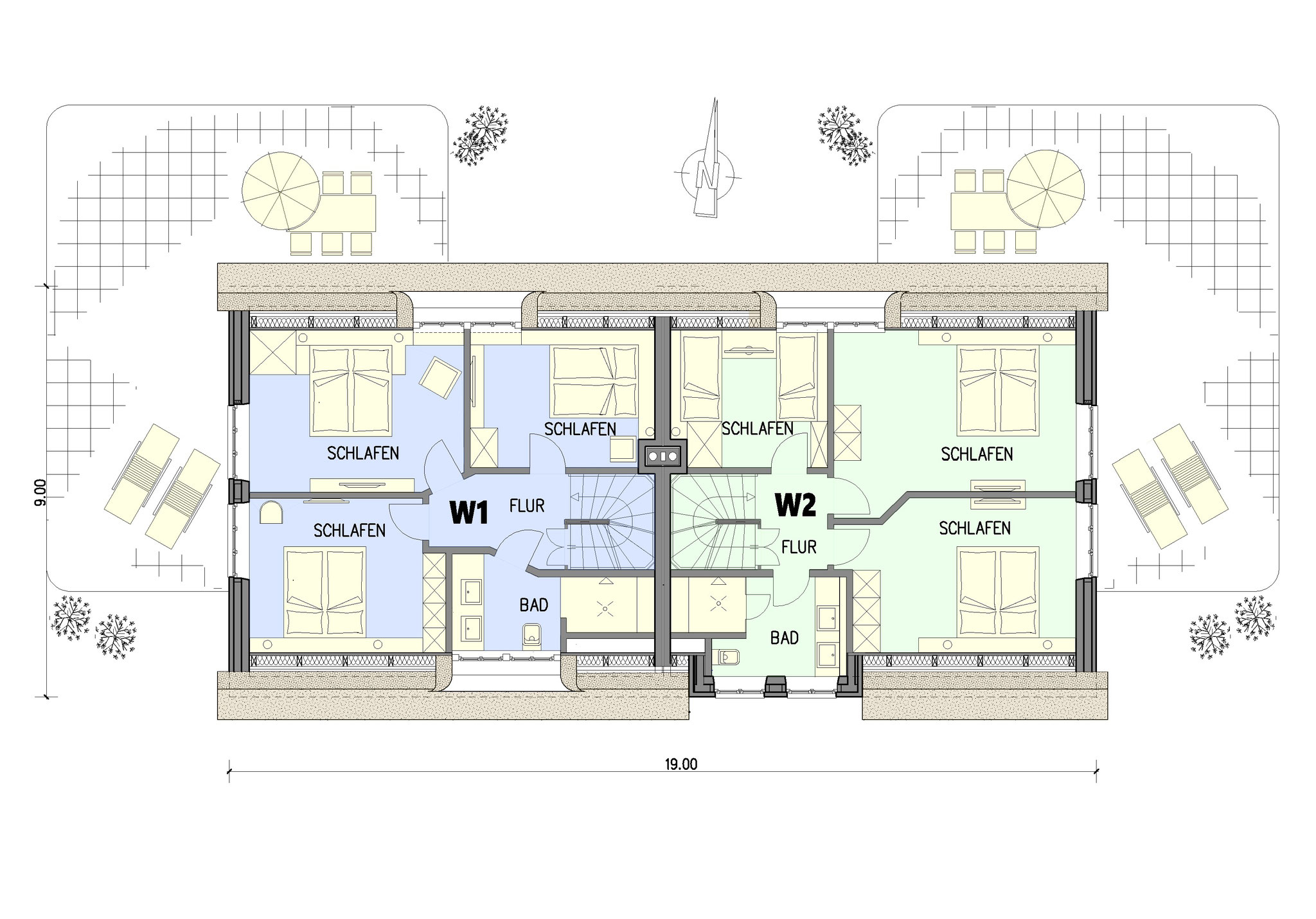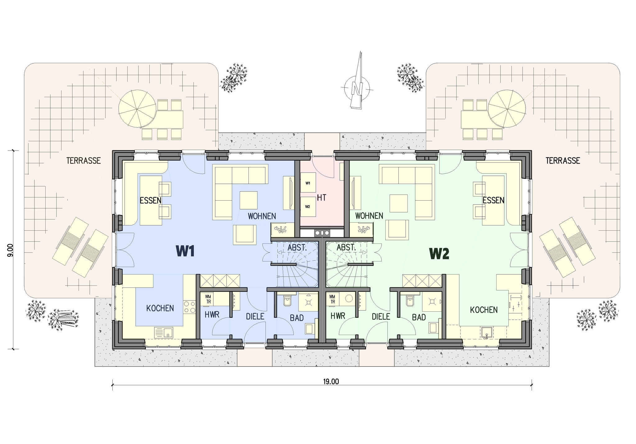 Auf der Rückseite ist ein gemeinsamer Haustechnikraum.
