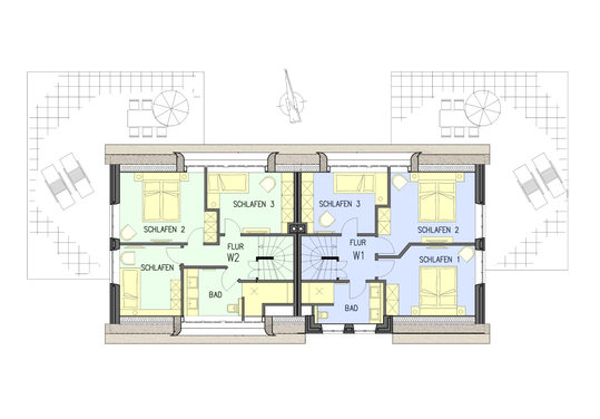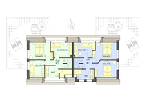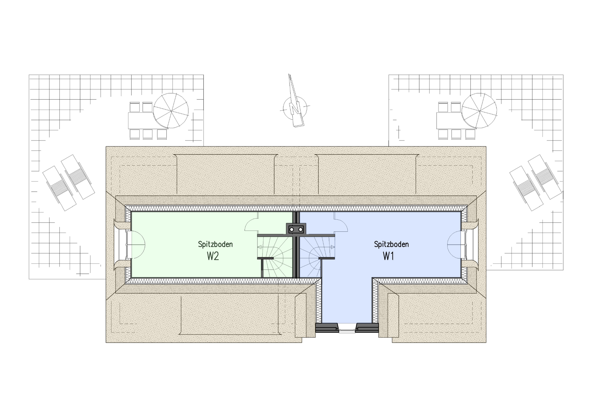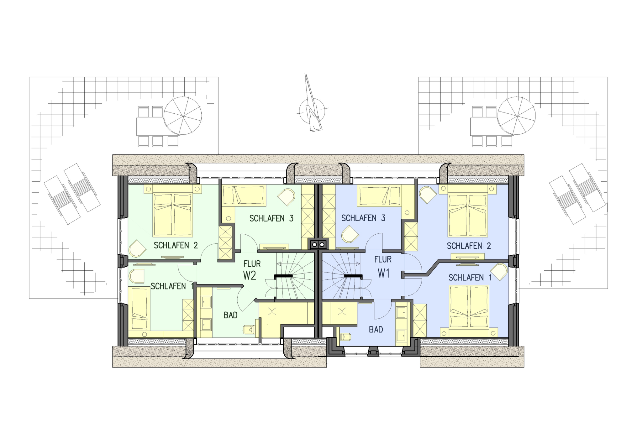 Das Dachgeschoss ist ausgestattet mit drei Schlafzimmer ein Bad und ein Flur.