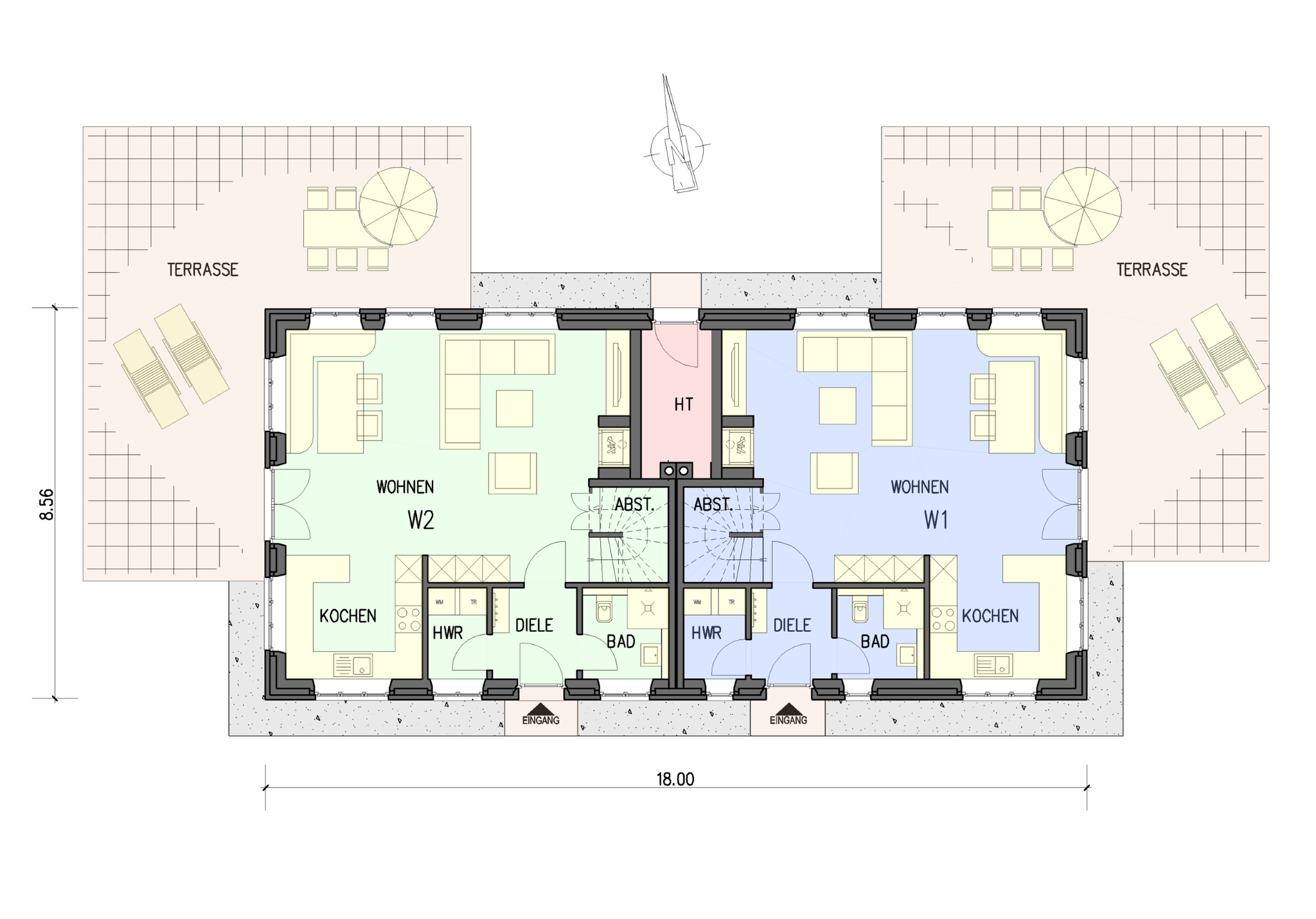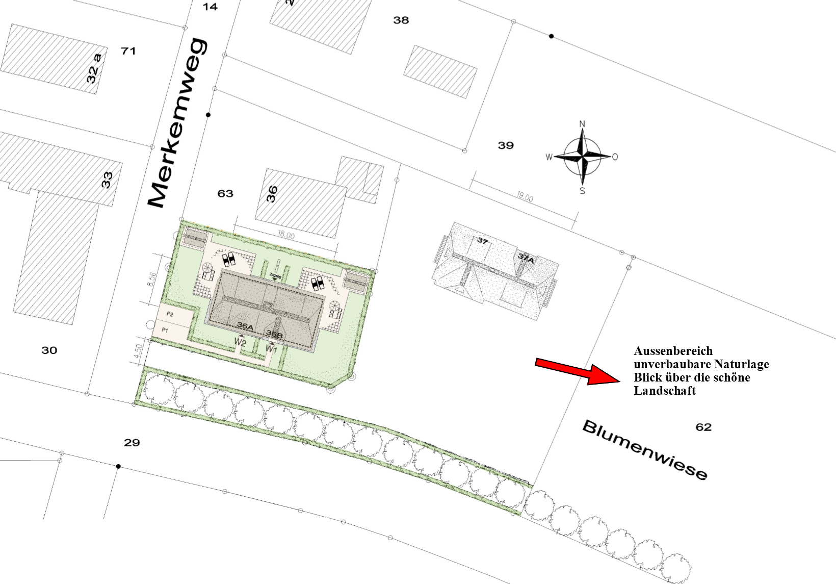 In der allein zu nutzenden Gartenfläche (Sondernutzungsrecht) ist eine befestigte Terrassenfläche von insgesamt ca. 63,00 m² angelegt. Diese ist aus dem Wohn-/Essbereich direkt erreichbar.
