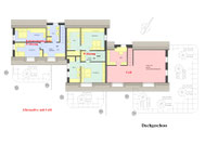 Im Dachgeschoss befinden sich zwei Schlafzimmer und ein Bad, sowie ein Abstellraum im Spitzboden.