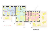 Wohnung 1( 131,91 m²): im Erdgeschoss befinden sich ein großes Wohnzimmer mit integrierter Küche, Essraum, Abstellraum, Bad und ein Flur.