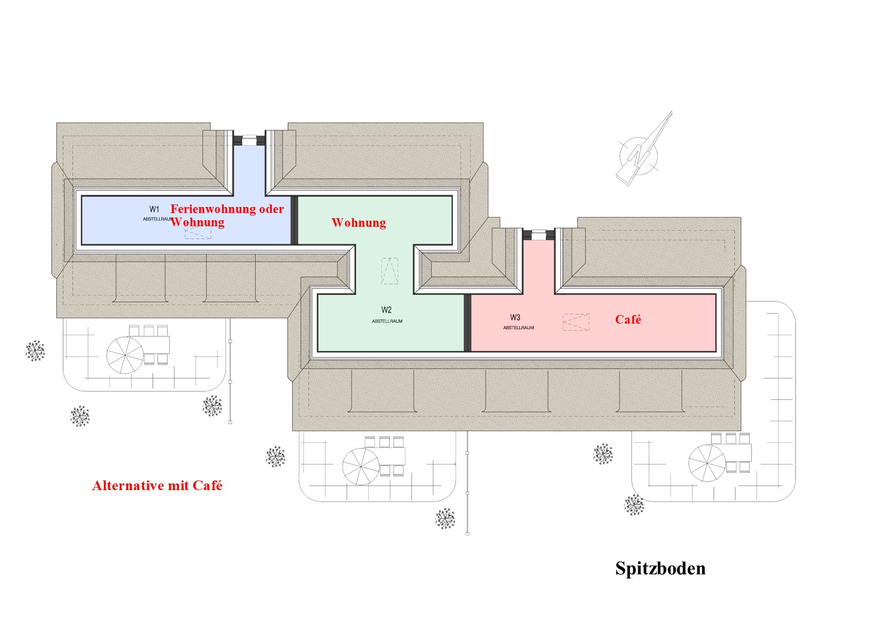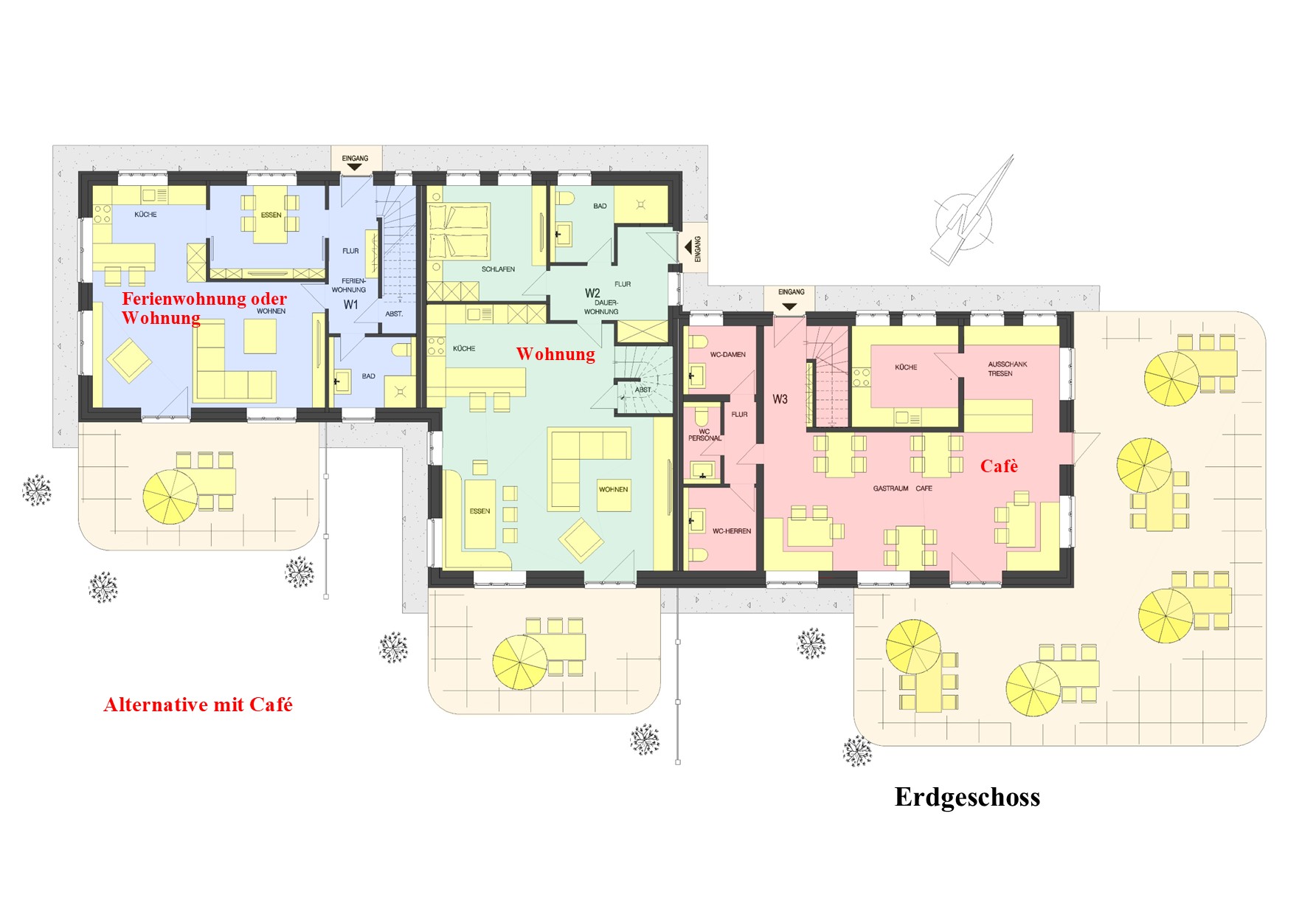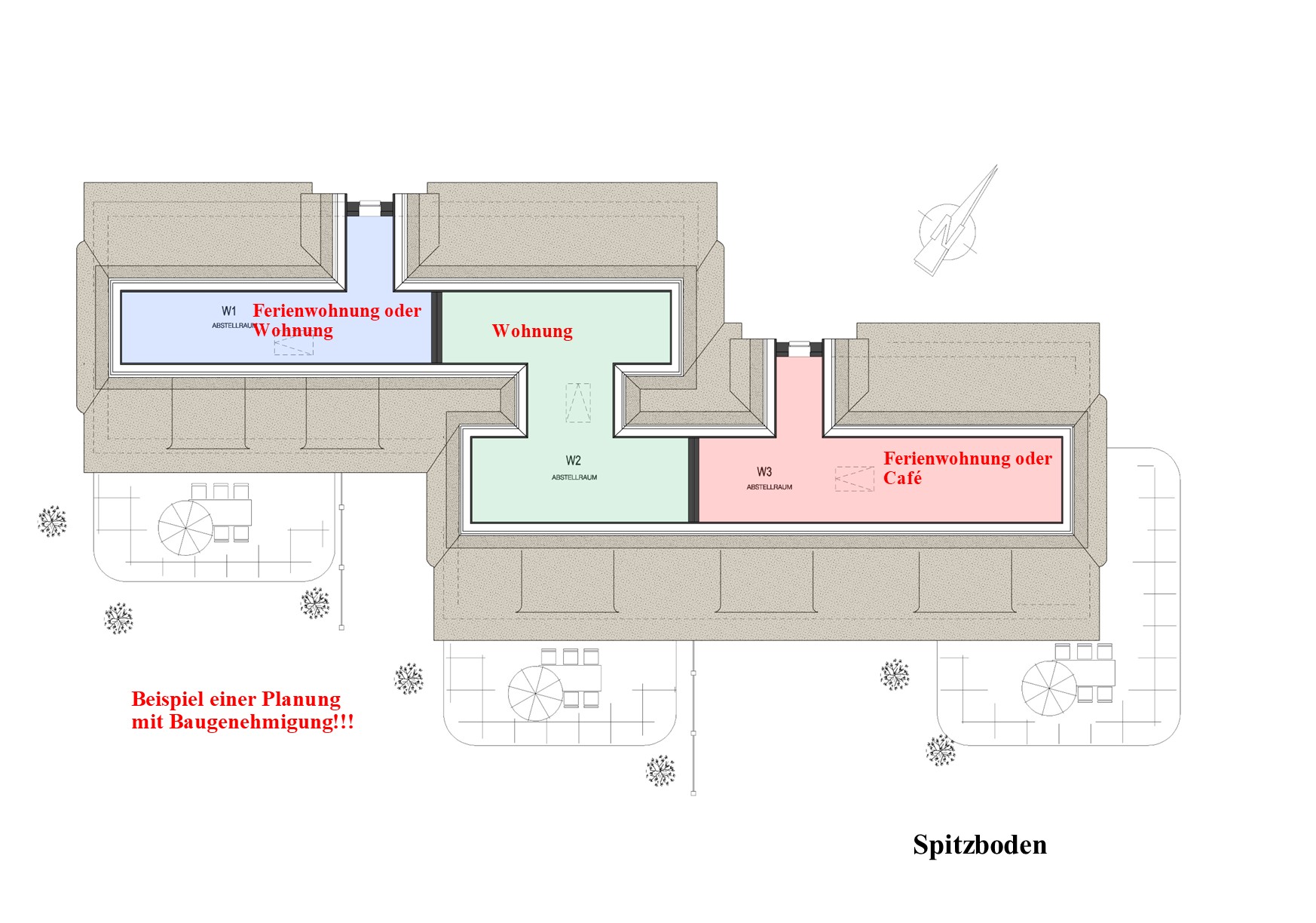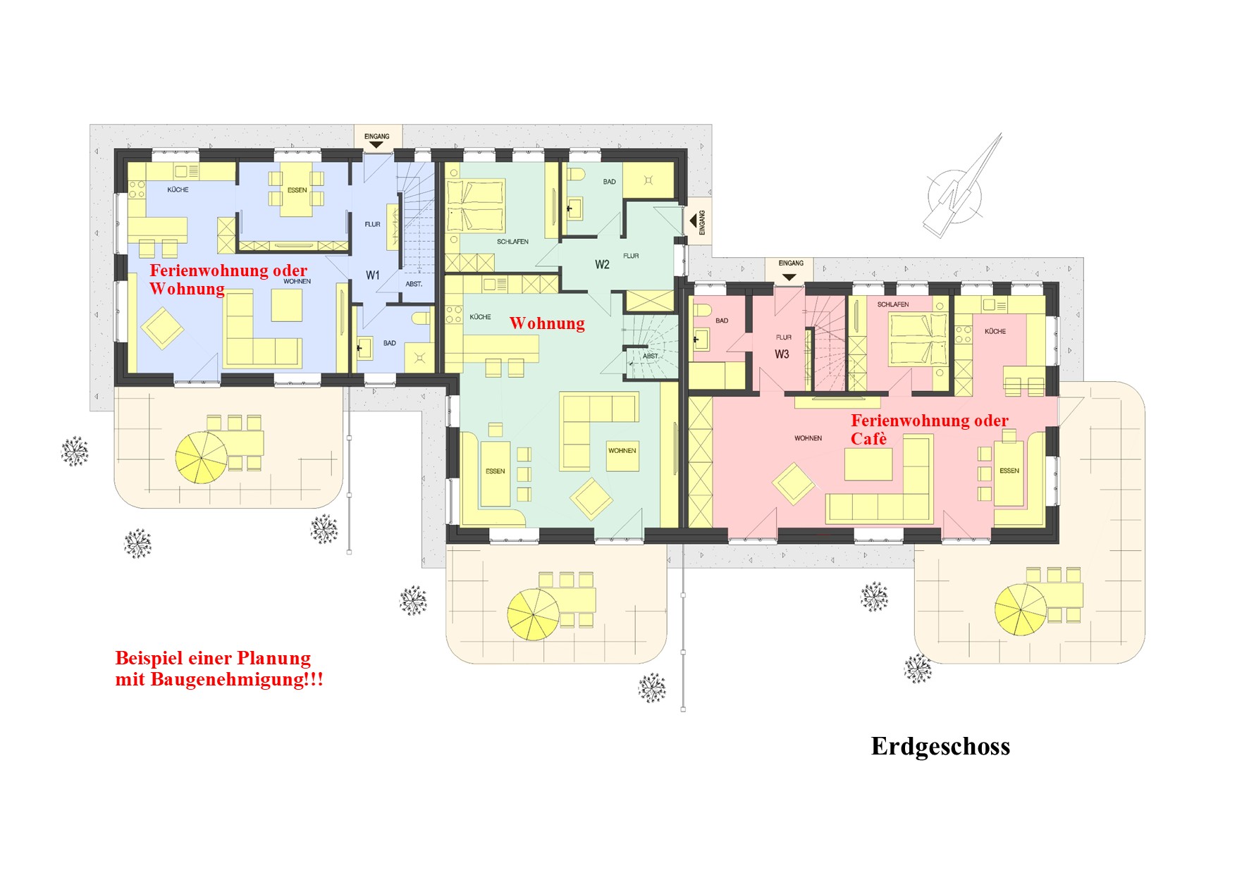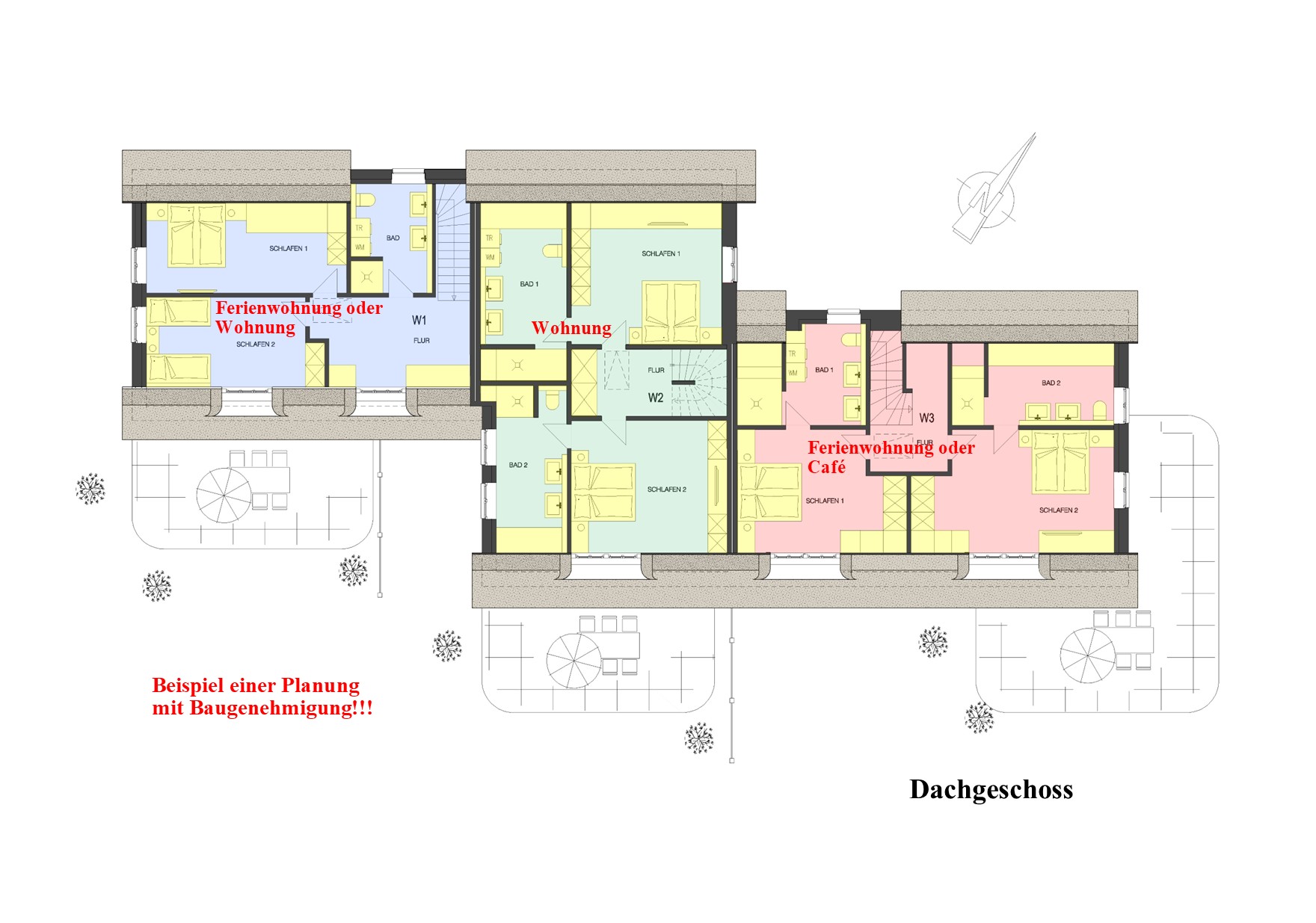 Für das Altgebäude liegt als Alternative eine Baugenehmigung für einen Umbau in zwei Wohnungen und eine Ferienwohnung vor.