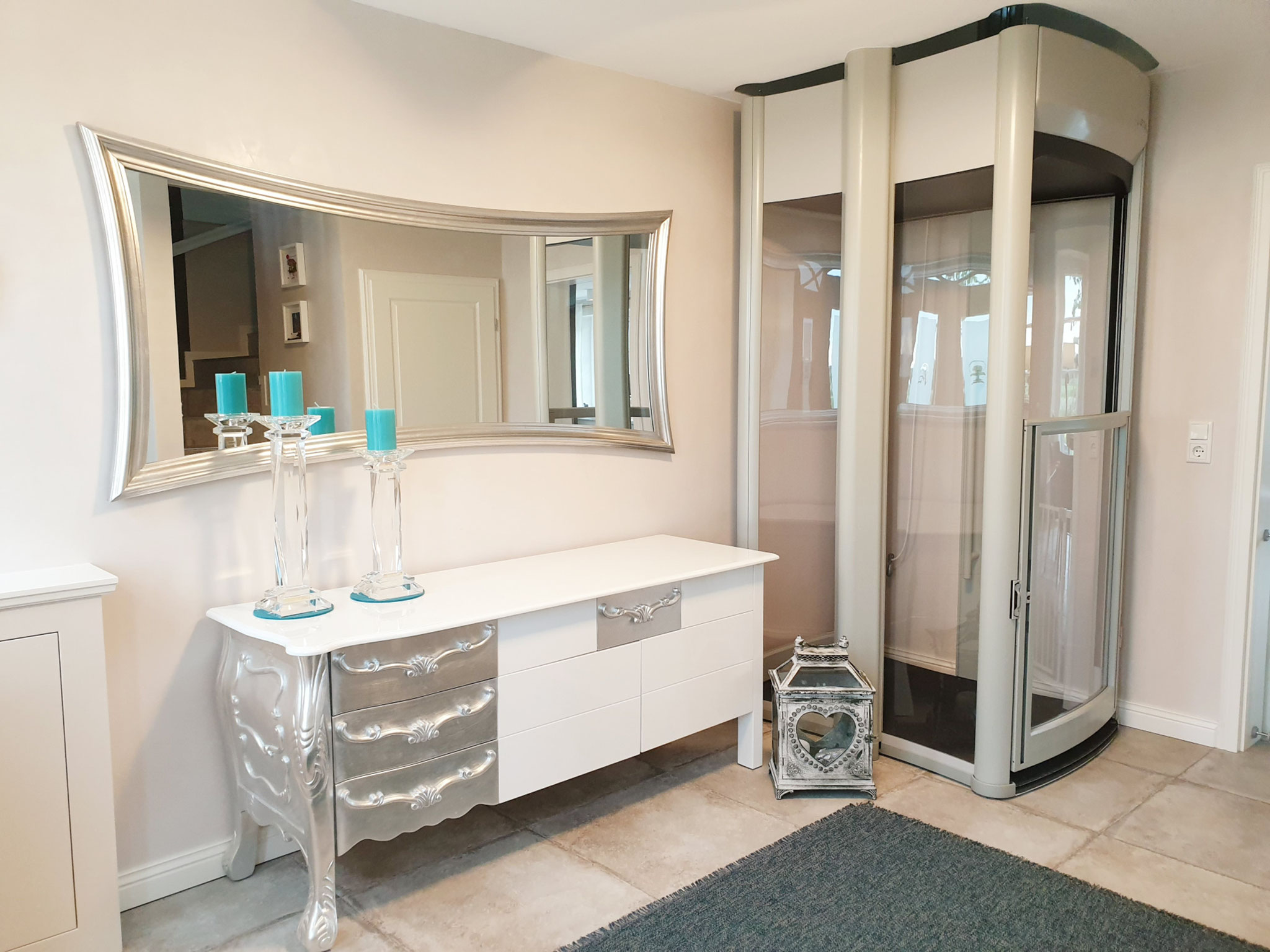 Im Gebäude befindet sich ein Fahrstuhl der das Erdgeschoss und das Dachgeschoss zusätzlich zur Treppe verbindet.