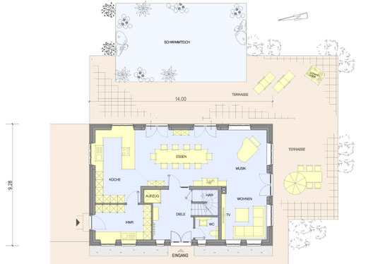 ca. 87,00 m² angelegt. Diese ist aus dem Wohn-/Essbereich direkt erreichbar.